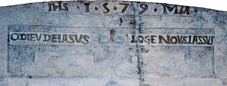 Linteau de la maison d'Azet, se trouvant à Valmirande (près Montréjeau) au dessus de la porte d'entrée de la chapelle.