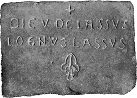 pierre tombale se trouvant à Saint-Geniès et provenant du village d'Azet, berceau des Lassus dans les Pyrénées.